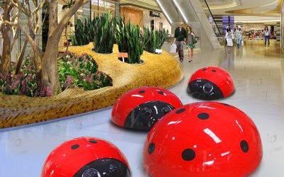 商場玻璃鋼雕塑指的是用于商業場所的玻璃鋼雕塑作品,除企業產品的ip形象雕塑外,一般是裝飾性美陳雕塑擺件,包括但不限于座椅板凳、花盆、吉祥物、卡通公仔等等。